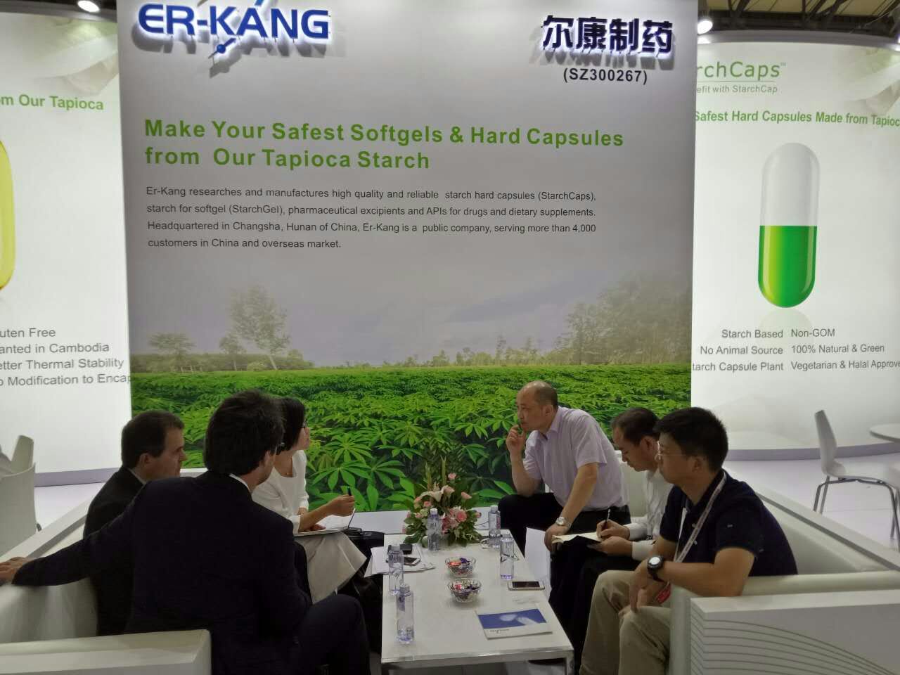在展會上,淀粉膠囊因其天然健康的優(yōu)勢,以及高科技水準,在展會上一亮相,就吸引了大批客戶前來展臺咨詢。“淀粉膠囊真的是純植物的嗎?”“淀粉膠囊服用了有沒有副作用?”“和其它膠囊相比,淀粉膠囊有什么優(yōu)勢?”······面對接踵而來的問題,工作人員都一一耐心地為客戶解答。