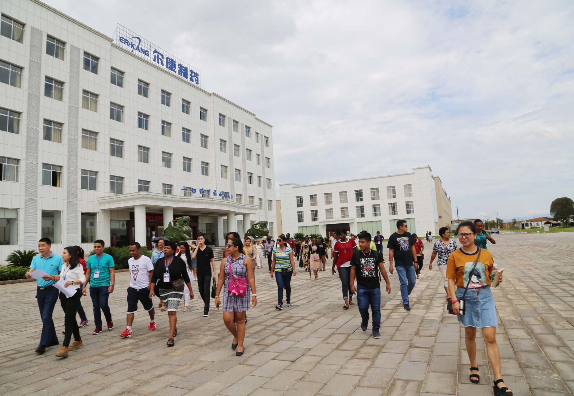 十五國醫(yī)療衛(wèi)生官員在爾康制藥總部辦公大樓合影