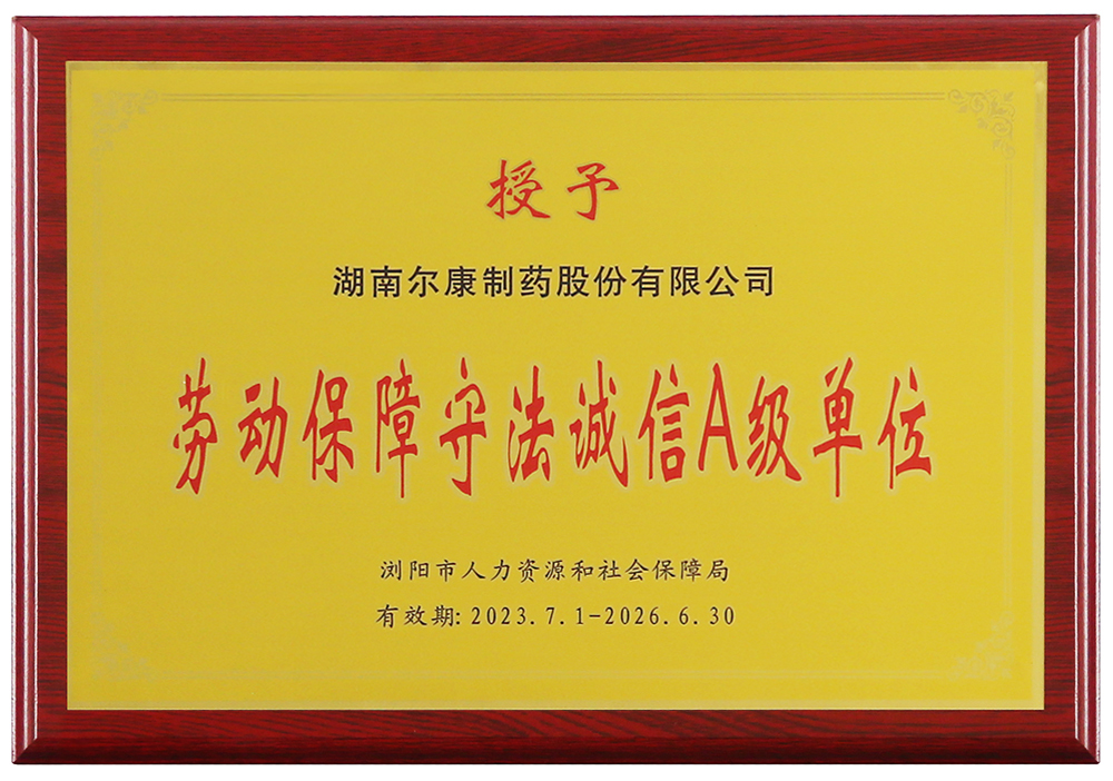 爾康制藥榮獲“勞動(dòng)保障守法誠(chéng)信A級(jí)單位”